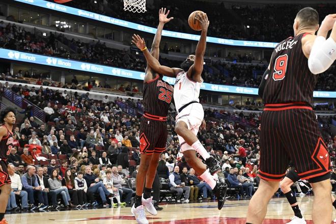 小卡缺阵科林斯空砍23分,哈登24+5+6+6失误,公牛终结快船6连胜