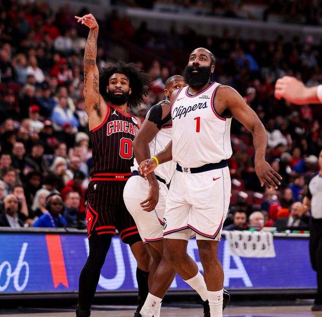 小卡缺阵科林斯空砍23分,哈登24+5+6+6失误,公牛终结快船6连胜