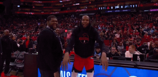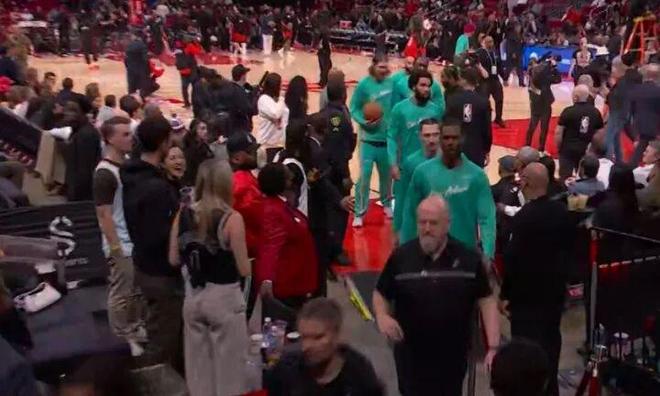 火箭那边热身完在场下干等,身子都变冷了,球员开始精神唤散