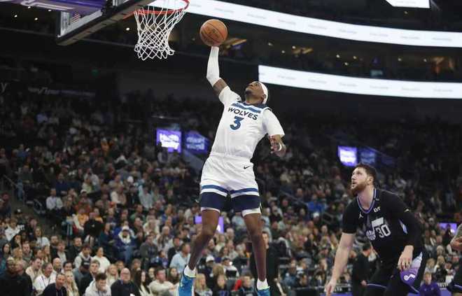 森林狼:爱德华兹5记三分38分8篮板,戈贝尔11分10篮板4盖帽,麦克丹尼尔斯18分6篮板6助攻,兰德尔19分,迪文琴佐15分8助攻,里德13分8篮板。