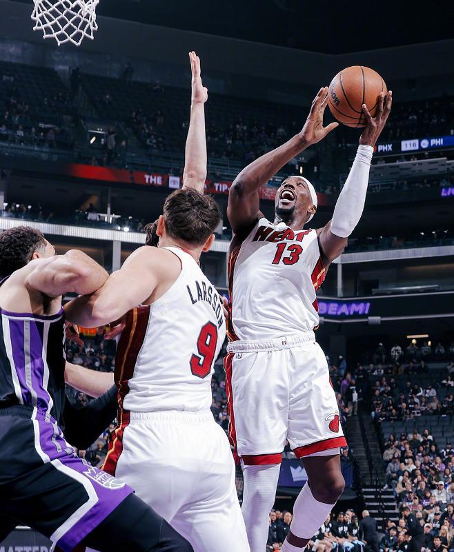 重新回到赛场之后,热火三驾马车的发挥依旧稳定,阿德巴约面对雷诺和小萨博尼斯的轮番消耗,仍然靠着15次出手命中8球的效率,贡献了25分、7个篮板、5次助攻、1次抢断和1个封盖的全面个人数据。