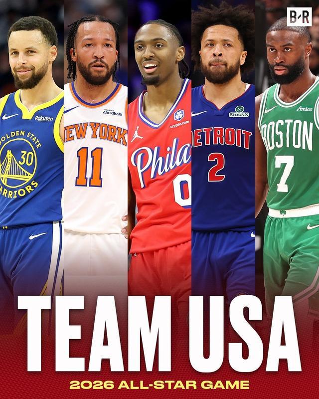 在全明星美国队首发五人中,有4名控球后卫,仅有杰伦-布朗一名前锋,他也是美国队首发最高的球员,为1.98m。