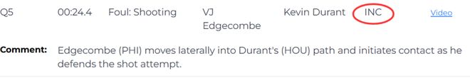 第二次漏判,发生在距离加时赛结束还有24.4秒,76人队的埃奇库姆在防守杜兰特的投篮时,横向移动切入杜兰特的进攻路线,并主动发起了身体接触。这是一次漏吹的投篮犯规,杜兰特将球打进,所以火箭本该获得加罚一球的机会。杜兰特也向裁判摊手表示对方犯规,但裁判没有表示。这次漏判是火箭吃亏,76人获利。