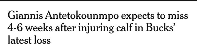 Shams:字母哥赛后自宣右小腿拉伤,预计将缺席4-6周