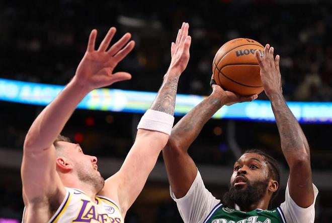 但是,这场比赛,湖人因为在末节落后10分以上,东契奇不得不提前回来。东契奇上场之后制造了一次三分犯规,他3次罚球全进。不过,这时候的独行侠球员仍然充满能量,随着克莱布·马丁投进三分球,全场比赛还剩7分钟时,独行侠102比87领先15分。看起来,胜利的天平已经在偏向独行侠了。