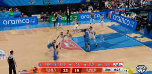 廖三宁一条龙穿越北京多人防守压哨上篮得分。