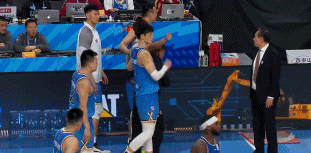 陈盈骏疑似抛传队友球直接进筐,替补席赵睿忍不住笑了。