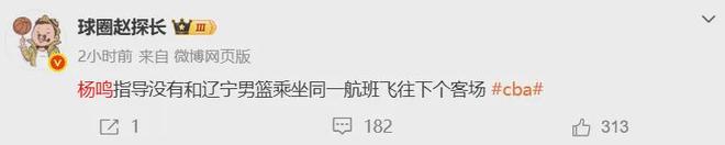 紧接着国内知名媒体人表示杨鸣没有跟随辽宁队,准备与四川队的客场比赛。
