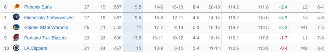 快船目前21胜24负,太阳27胜19负,快船距离西部第六也只有4.5个胜场,感觉快船本赛季依旧有希望去冲击西部前六,勇士、开拓者、森林狼等球队被快船反超感觉只是时间问题。