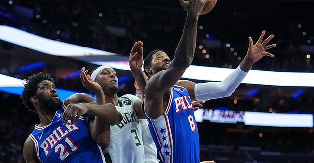 76人队乔治三分15投9中得到32分5板5助2断,恩比德29分9板5助,马克西22分9助,麦凯恩17分,埃奇库姆12分8板7助1断2帽;