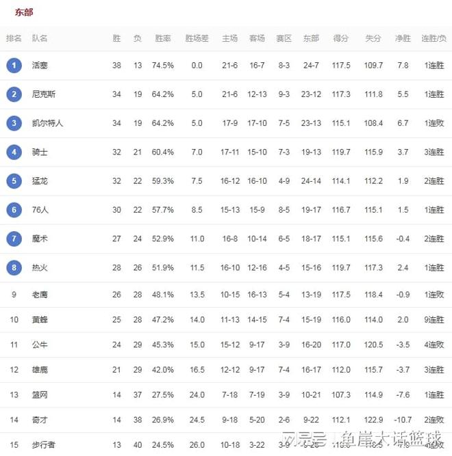 NBA最新排名出炉!东部第二22分惨败,湖人收大礼,一队威胁骑士