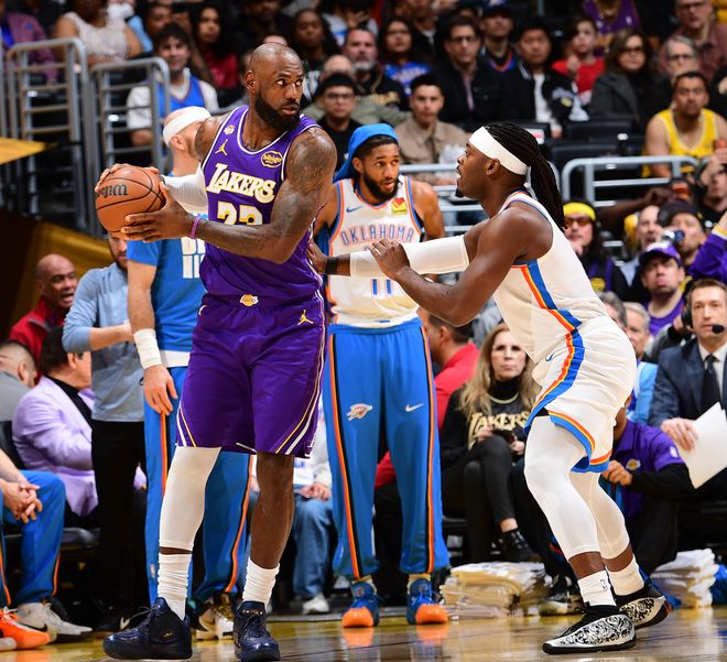 湖人110-119不敌7人上双雷霆,詹姆斯22+6+10,杰伦威23分