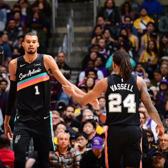 据ESPN数据统计,这是24秒进攻时代(1954-55赛季以来),历史上第五次有球员在26分钟或更少时间内砍下至少40分。文班亚马还抢下12个篮板,成为NBA历史上除名人堂成员尤因之外,唯一在这么短时间内拿到40+两双的球员。