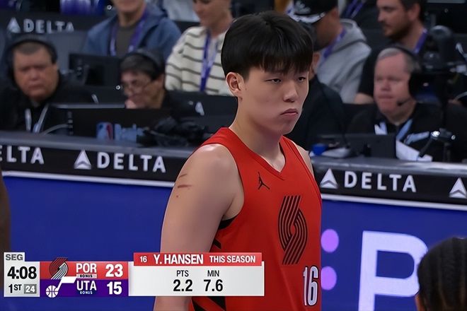 今天的比赛,杨瀚森总体发挥还可以,出场3分钟,拿下了2分,其他数据都为0。首节上场之后,对手科利尔罚球,第二罚不进,杨瀚森卡住篮板球位置,队友格兰特顺利捡漏拿下篮板。随后的进攻回合,杨瀚森和后卫打挡拆,然后顺下往里走,一个轻巧上篮,没有进,但是裁判哨响吹了菲利波夫斯基打手犯规,杨瀚森获得2次罚球的机会。但爵士队主帅哈迪很不解风情,不知道是故意的还是为啥,对这个犯规进行了挑战。