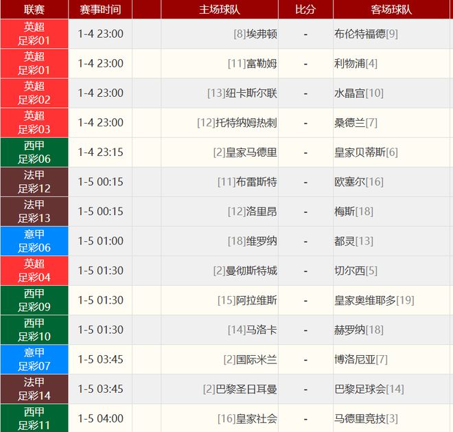 其他赛事比分: