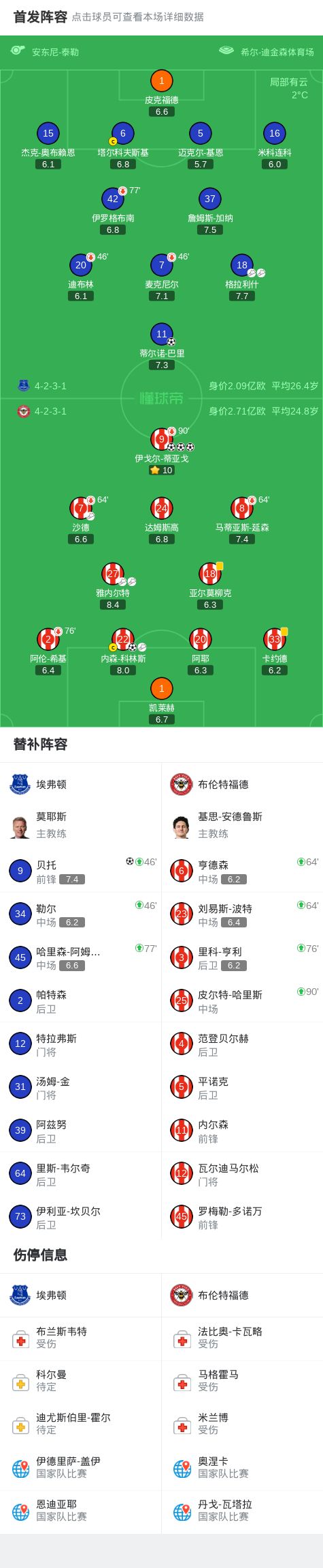 北京时间1月4日,英格兰足球超级联赛第20轮,埃弗顿坐镇主场迎战布伦特福德。比赛中,布伦特福德前锋伊戈尔-蒂亚戈完成帽子戏法,内森-科林斯建功。埃弗顿方面,格拉利什助攻双响,贝托、蒂尔诺-巴里破门。最终全场战罢,埃弗顿以2比4不敌布伦特福德。