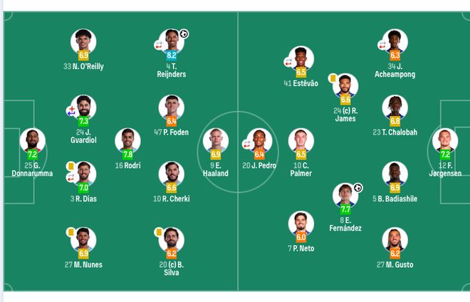 第94分钟绝平,恩佐当选曼城vs切尔西全场最佳球员