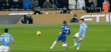 第11分钟,曼城获得前场位置不错的任意球,谢尔基没有射门,而是选择传球,恩佐反应迅速,完成解围。