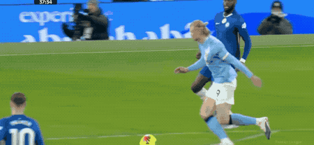 第20分钟,福登接到长传后的停球和过人一个动作完成,之后的射门稍稍偏出。