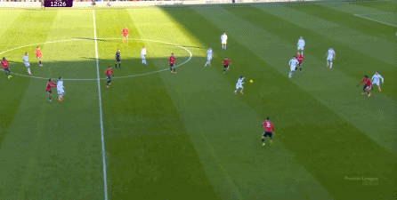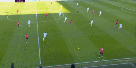 这也体现在比赛第16分钟,曼联用很简单的方式就打穿了利兹联的中路防线,让谢什科获得了进球机会: