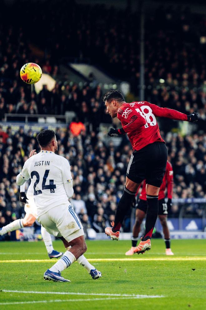 谢什科将卡塞米罗的传中顶成了这个样子: