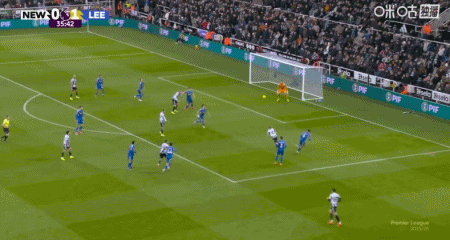 第45+5分钟,佳夫手球送点,勒温主罚点球命中,利兹联2-1纽卡