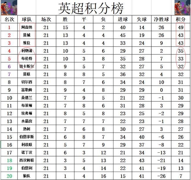积分榜方面,上轮前6的球队本轮都无力赢球,阿森纳,曼城,维拉,利物浦和曼联都是平局,只有切尔西输了球,阿森纳还是6分优势力压曼城和维拉领跑,利物浦还是差阿森纳14分排在第4。布伦特和纽卡斯尔追上来,两队将曼联和切尔西挤出前6,布伦特差利物浦2分排在第5。