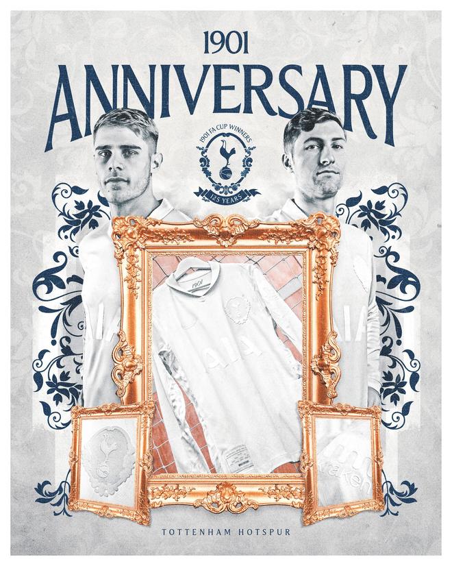 为纪念这一载入史册的成就,热刺一线队将在明日打响的足总杯第三轮对阵阿斯顿维拉的比赛中,身着与耐克联名打造的1901复古纪念版球衣出战。
