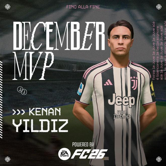 北京时间1月9日,尤文图斯官方宣布,土耳其前锋凯南-伊尔迪兹当选他们队内的2025年12月最佳球员。