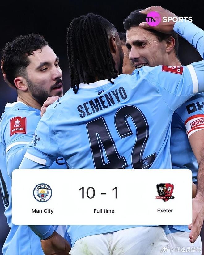 5-1、10-1!曼城蓝军残暴狂胜,塞梅尼奥及罗塞尼尔完美首秀达成