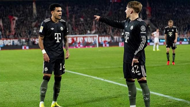 那场德国杯是拜仁本赛季第一次在比赛中面临落后的局面,但仅仅5分钟之后,明显越位在先的迪亚斯就补射扳平(德国杯前两轮不设VAR),而这一回也大同小异。由于科隆极端球迷在开场时大量燃放烟花导致场内烟幕弥漫,比赛从第3分钟起一度中断了近10分钟,于是上半场补时长达11分钟。就在这段超长补时来到第5分钟时,格纳布里扳平了比分,即拜仁只落后了不到10分钟。