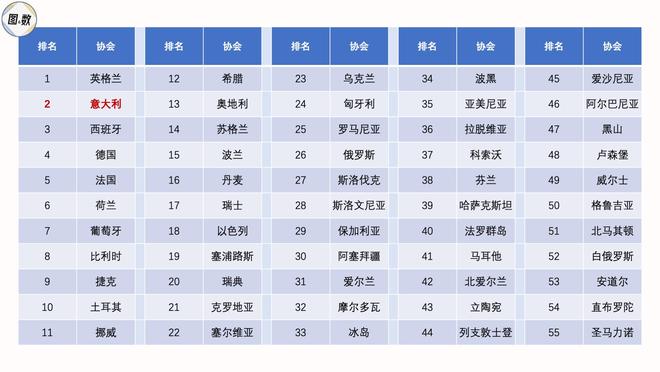 虽然意大利国家队尚未确定是否能参加2026美加墨世界杯,但意大利整体的足球实力还是很强的,在俱乐部的欧战方面,意大利目前是欧洲第2协会(2025年6月版欧足联系数),仅次于英格兰。