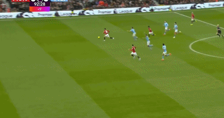 第56分钟,B费大范围长传,阿马德-迪亚洛右路内切劲射,被多纳鲁马扑出,紧接着卡塞米罗近距离补射,再度被曼城门神化解。