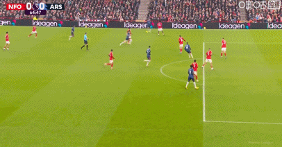 第54分钟,阿森纳连换三人,萨卡、热苏斯、梅里诺替补登场