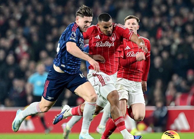 比赛开打之后,两支球队就拉开架势对攻,第8分钟厄德高右路肋部传中,但马丁内利禁区内抢点没有争到皮球,第24分钟诺丁汉森林后场送出一脚直塞,好在拉亚及时出击,才破坏了对手的单刀机会。