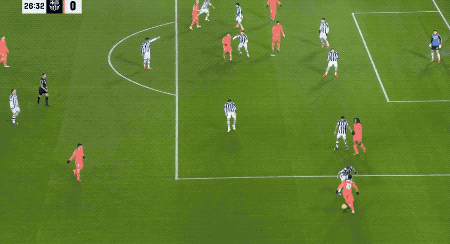 第20分钟,巴萨前场控球,佩德里的挑传和德容的射门都相当完美,但德容接球时已经越位,本场比赛的第三个进球也被吹掉了。