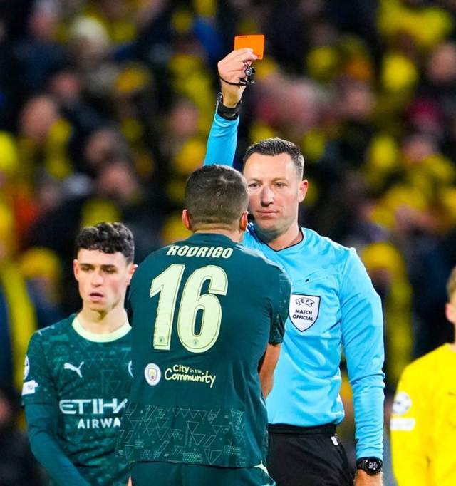 罗德里两黄仅隔53秒,为鲁尼之后英格兰俱乐部球员在欧冠最快