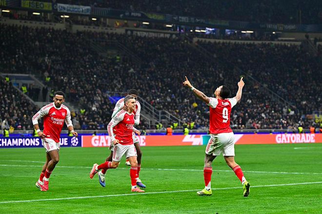 欧冠16强首队诞生!热苏斯双响,阿森纳3-1国米破魔咒造队史纪录