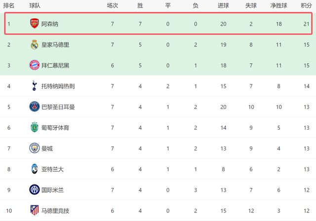 欧冠全胜双线领跑!团结无私的阿森纳不可战胜