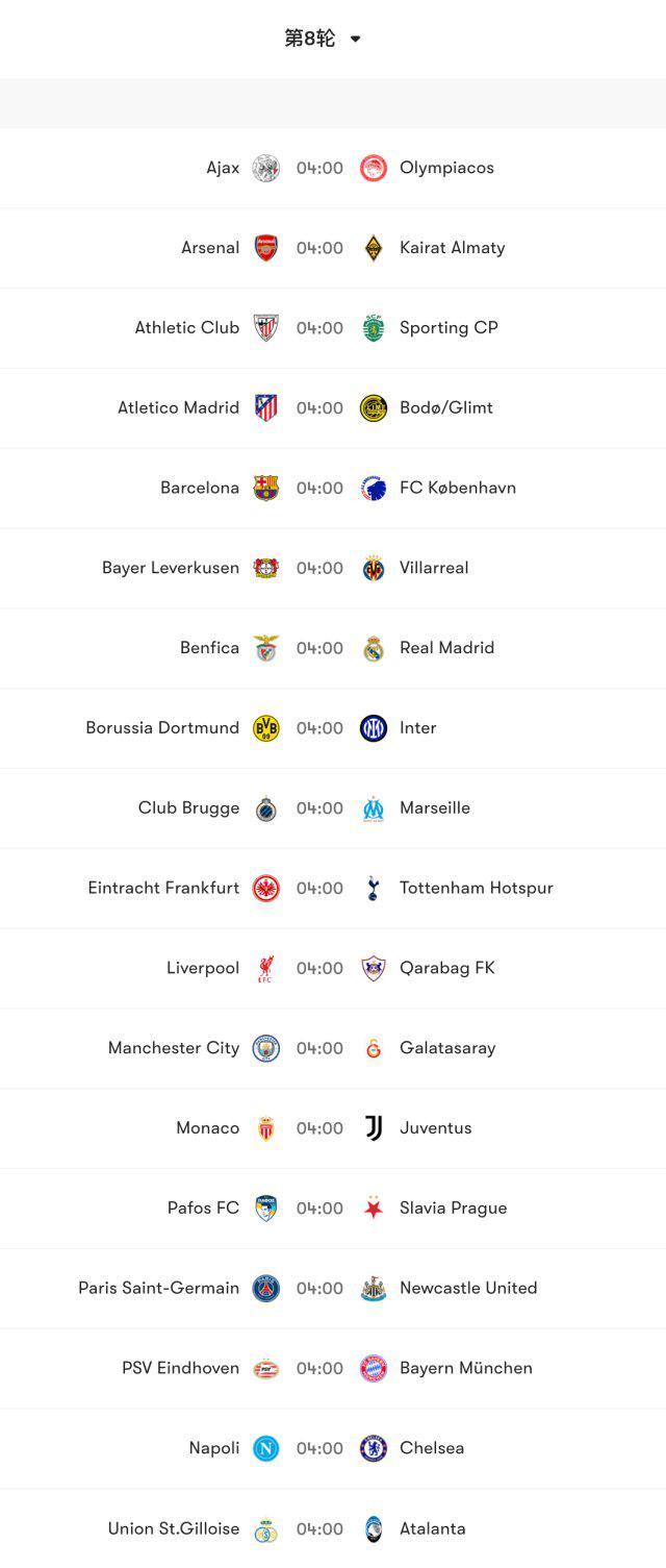 得益于赛制改革,欧冠联赛阶段第7轮战罢,从排名前8的头部争夺,到9-32名的中下游厮杀,悬念一直保持到最后一轮。目前只阿森纳和拜仁提前确定晋级16强淘汰赛,第3名的皇马到第15名的尤文只差3分,前8直升名额之争异常激烈,中游部队更是大乱战,而第25名那不勒斯到第32名阿贾克斯,理论上仍有机会获得附加赛资格,36队中只有法兰克福、布拉格斯拉维亚、比利亚雷亚尔和凯拉特4队提前出局。而且可以预见,到了淘汰赛附加赛,竞争还会更加惨烈过瘾。