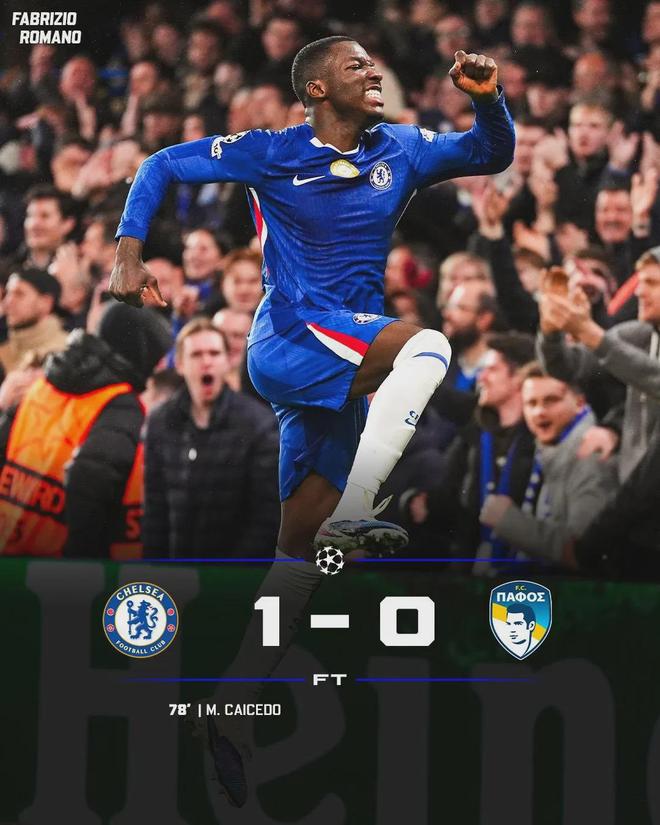传球成功率高达94.5%,为有统计以来切尔西欧冠单场最高