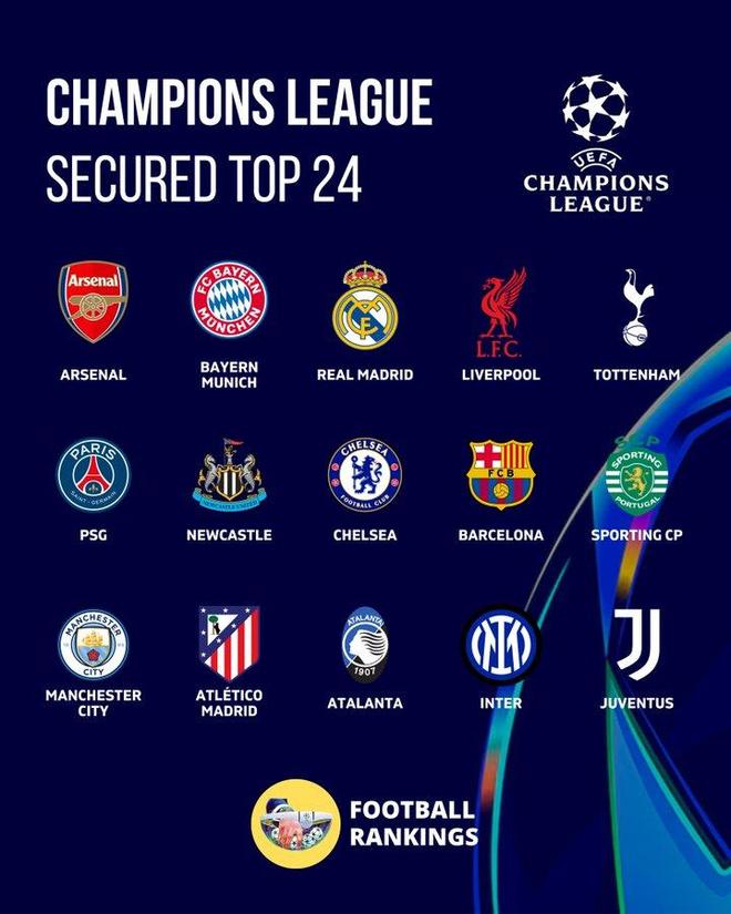欧冠联赛阶段第7轮比赛全部结束,晋级形势进一步明朗。目前已有15支球队确定进入淘汰赛阶段,其中阿森纳与拜仁慕尼黑已经锁定联赛阶段前八,获得直通16强的名额。其余确定至少获得附加赛资格的球队包括皇马、利物浦、热刺、巴黎圣日耳曼、曼城等豪门。与此同时,相关机构也更新了本赛季的欧冠夺冠概率。