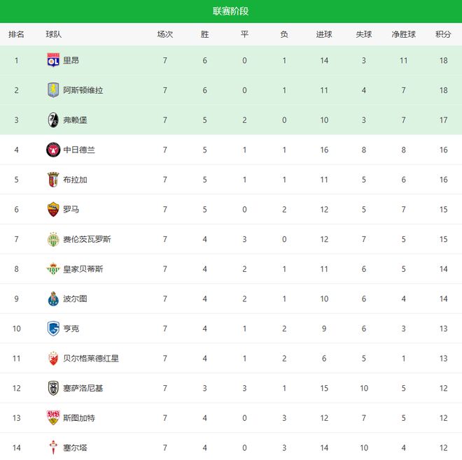 随着维拉1-0+罗马2-0!欧联杯最新积分榜:2队锁定16强,6队出局