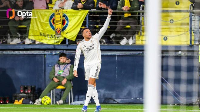 此役再次做客陶瓷球场,姆巴佩同样打入两球,帮助皇马客场2-0战胜比利亚雷亚尔。