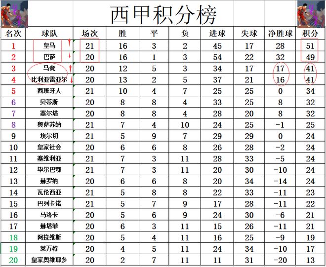 积分榜方面,皇马上半程一度5分优势力压巴萨领跑,但后来反过来被巴萨反超,今天先赛客场击败强敌后,皇马终于是以2分优势暂时夺回了榜首位置。比利亚雷亚尔完败后,差马竞一个净胜球,跌出前3。