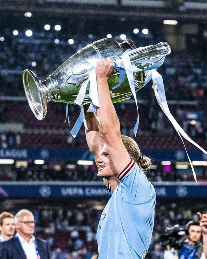 2022-23赛季,哈兰德加盟曼城的第一个赛季,曼城队史首次赢得欧冠冠军,首次夺得英超、欧冠、足总杯“三冠王”。这一成就,对曼城,对瓜迪奥拉来说,都是历史性的,对哈兰德来说也是。