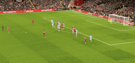 第63分钟,利物浦球员加克波发动快速反击,埃基蒂克脚后跟妙传,面对维尔茨的射门,格伊做出关键的解围。