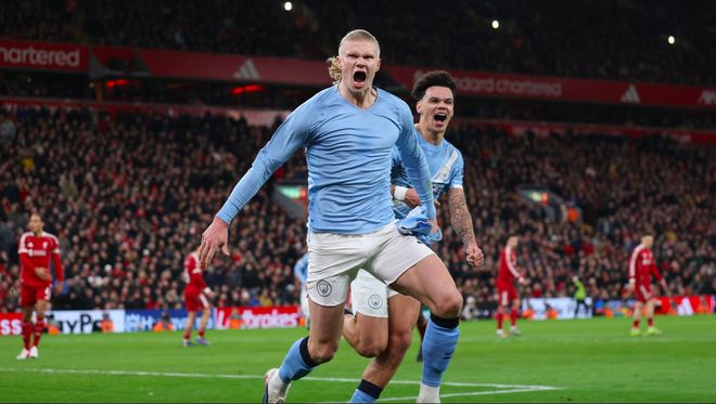 斯洛特造89年耻辱纪录!哈兰德破球荒+点射绝杀,曼城2-1利物浦