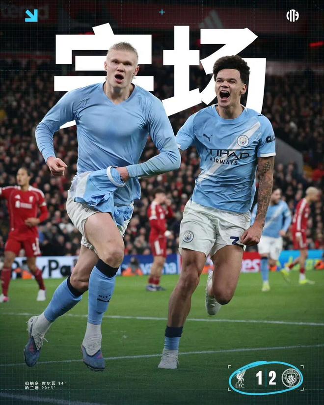北京时间2月9日0点30分,利物浦主场迎战曼城。上半场比赛,萨拉赫、埃基蒂克相继造险,马尔穆什远射偏出。下半场比赛,索博斯莱任意球世界波破门,常规时间尾声,哈兰德头球摆渡,B席铲射扳平比分。补时阶段,阿利松送点,哈兰德点射绝杀,索博染红。最终,曼城客场2比1逆转利物浦,完成本赛季对利物浦的主客场双杀的同时,继续保持了与阿森纳的6分分差。