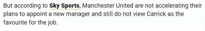 据英国天空体育报道,曼联并未加快任命新主帅的进程,仍不认为卡里克是该职位的最热门人选。